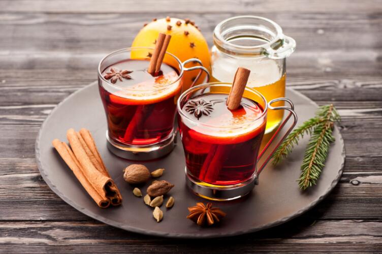3. Drücke die Gewürze noch mal über dem Glühwein aus –