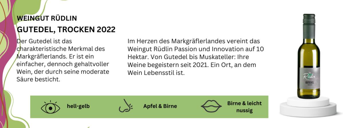 Gutedel mit internationalem Charakter. Durch sorgfältigen Ausbau im Holzfass erhält er Struktur und entfaltet ein tiefes, nuanciertes Aroma. Ein echtes Genusserlebnis.