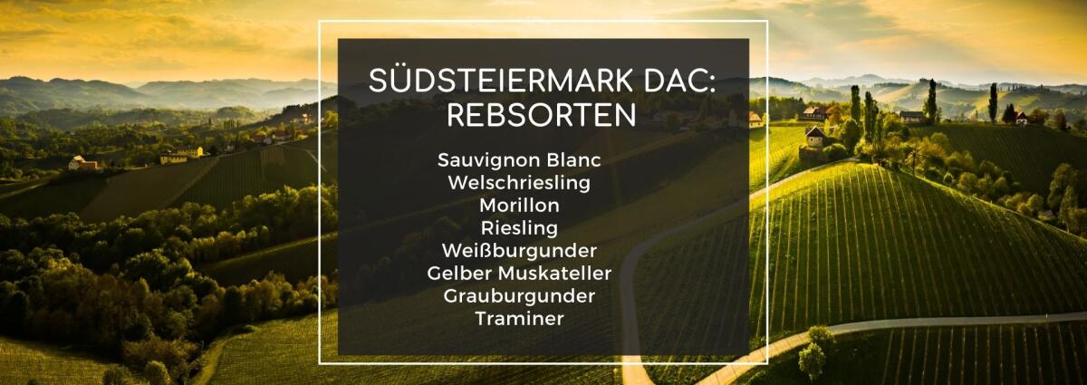 • Südsteiermark DAC (Gebietsweine): Gebietsweinen dürfen sich alle Weine nennen, die aus den oben genannten Sorten reinsortig oder als Cuvee ausgebaut werden und aus dem Weinbaugebiet Südsteiermark stammen. Ein Zukauf von Traubenmaterial aus anderen Regionen ist nicht erlaubt.